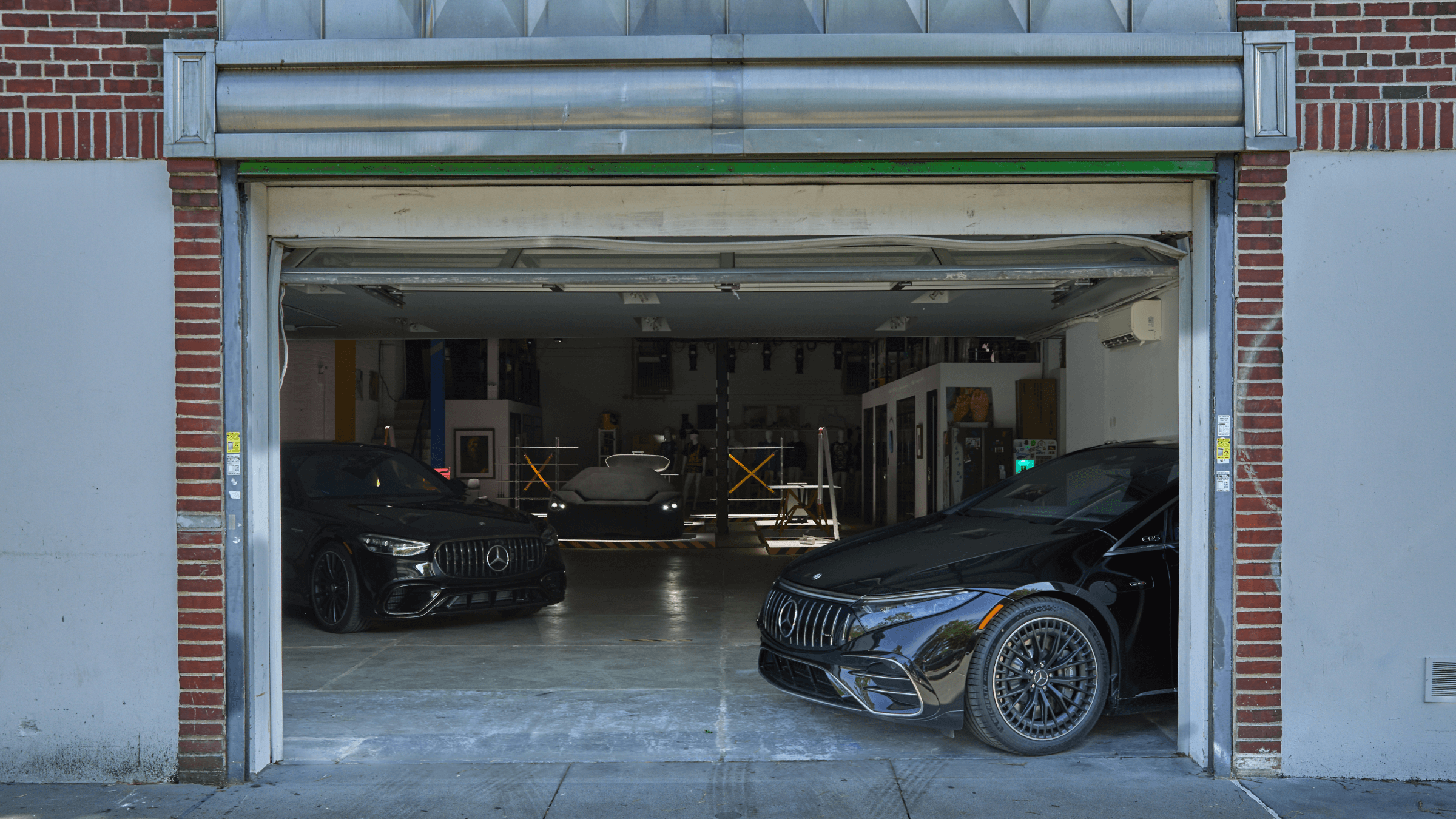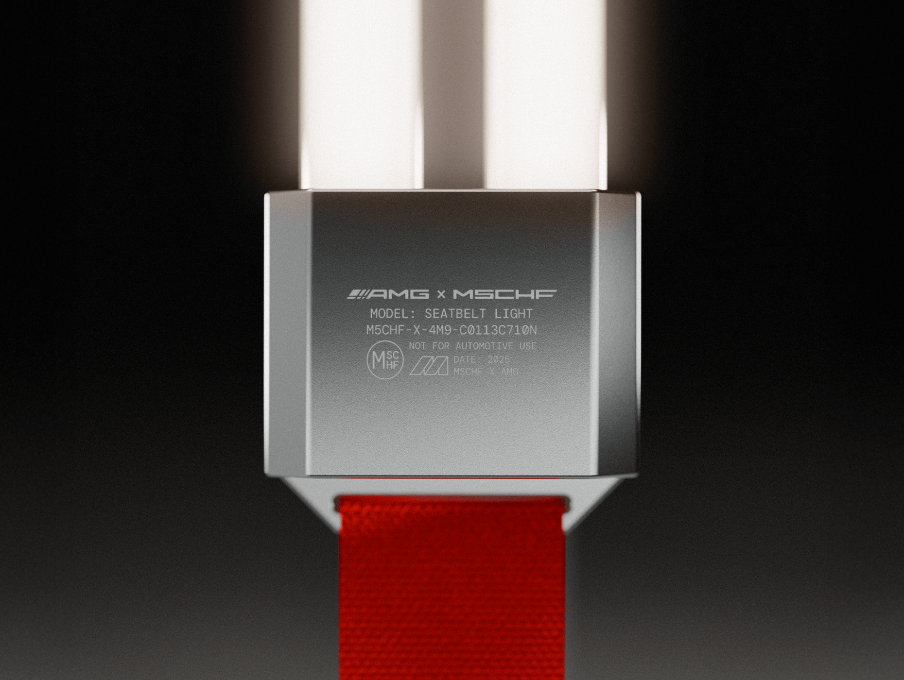 VIP invitations for Not for Automotive Use were garage door openers that unlocked the MSCHF studio. These were sent to recipients attached to genuine AMG sun-visor car parts.